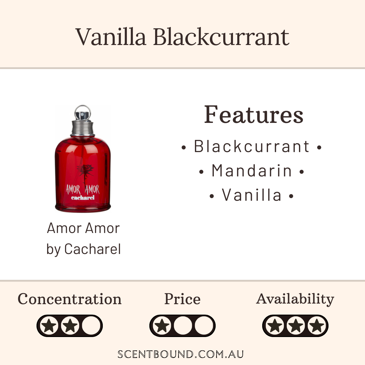 Looking for something similar? Bella Vita Rosa by Guess is another affordable citrus-blackcurrant fragrance, without the vanilla. Alternatively, Festival Nite by Hollister is an affordable blackcurrant and vanilla fragrance, without the mandarin note. A mid-range fragrance you might enjoy is Donna Born in Roma by Valentino. Or if you're after something high-end, check out Si Intense by Yves Saint Laurent.