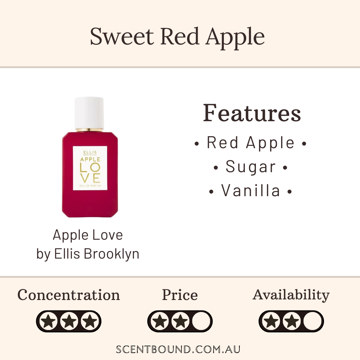 Description: A fragrance love letter to NYC, the energy, sophistication and headiness of this iconic city, Apple Love is a signature amber gourmand. The perfume bursts with juicy, photorealistic apple and transitions to a city chic, ultra-smooth blend of Peach Skin, Muguet, Plum Blossom, Sugar Cane and Vanilla.