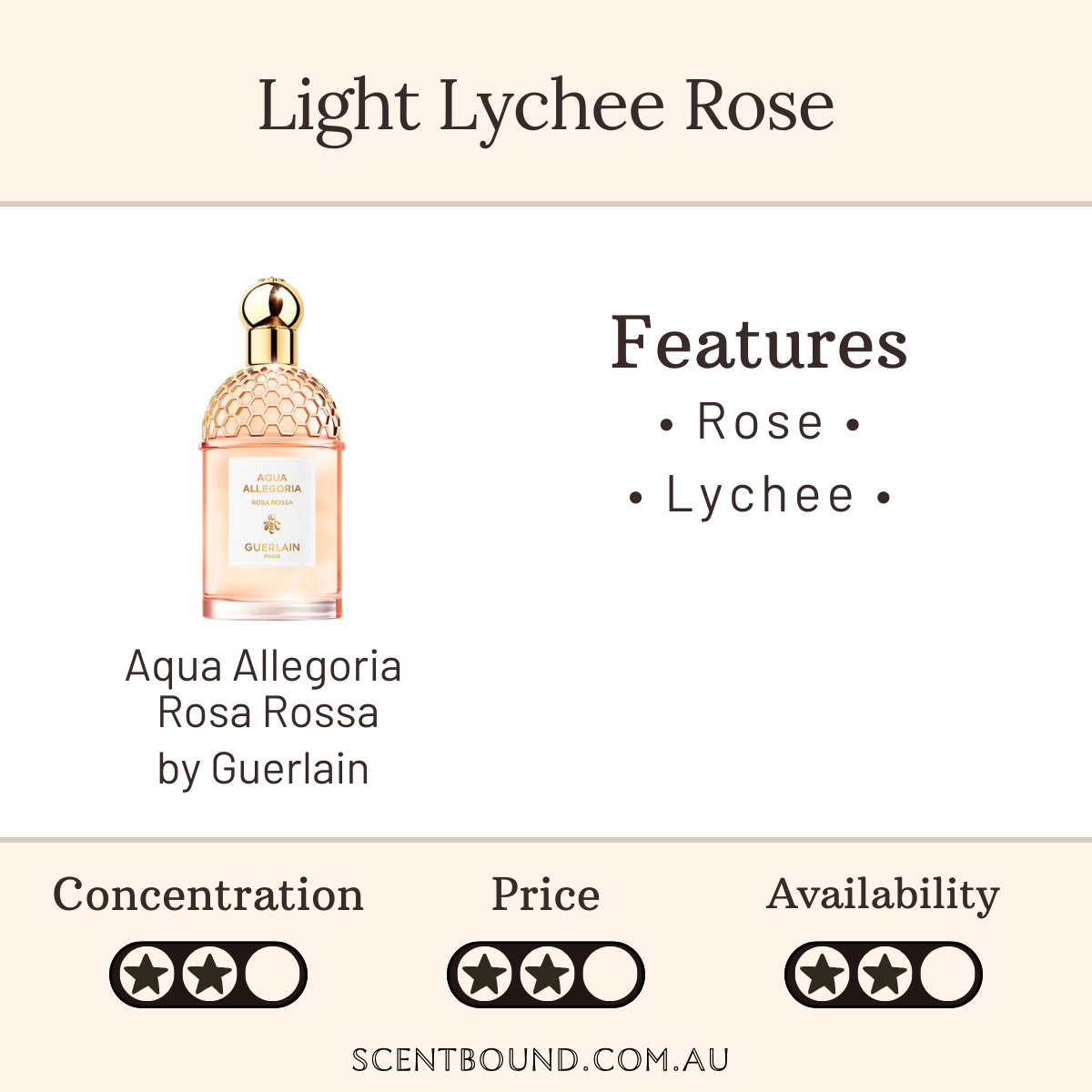 You can probably smell: Rose, peony, lychee and some blackcurrant.