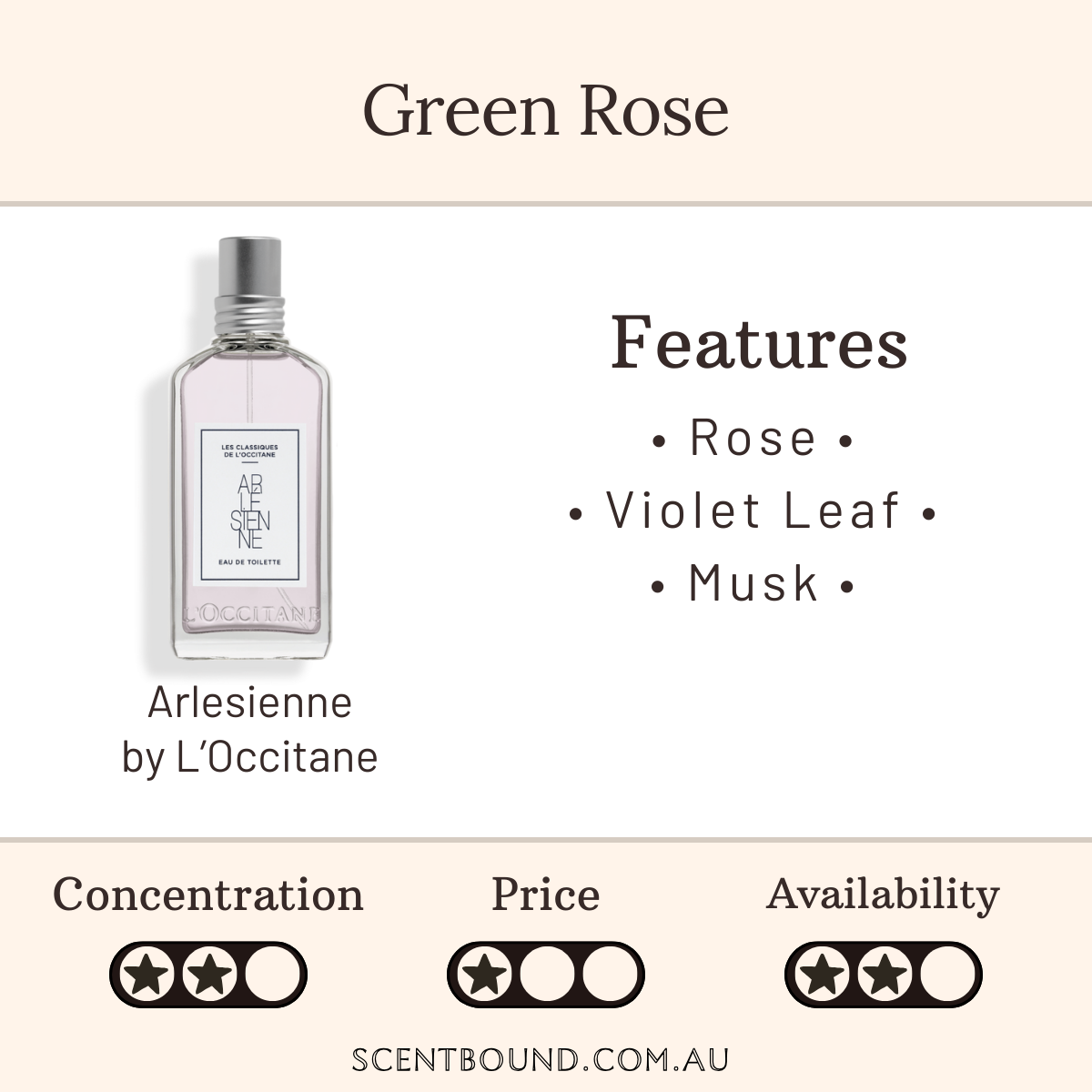 You can probably smell: Mostly rose, some green violet leaf and musk.