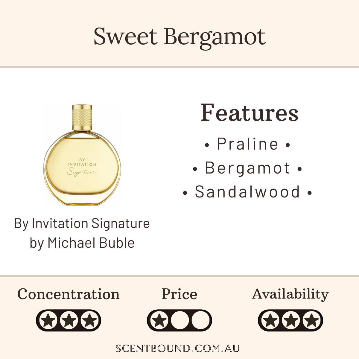 Description: Like Michael's music, By Invitation Signature is both modern and timeless. The fragrance starts with light, sparkling top notes of red fruits and bergamot, then develops its heart notes of lily of the valley, elegant rose, wild jasmine and spicy peony. By Invitation Signature then wraps you in a warm base of sandalwood-musks, blended with an addictive vanilla praline.