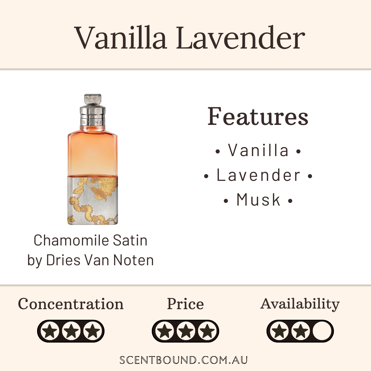 You can probably smell: Vanilla, lavender and musk, with some chamomile.