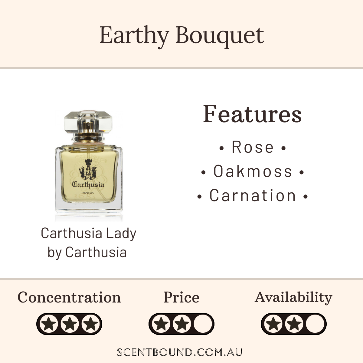 Description: Carthusia Lady Eau de Parfum brings forth the essences of 80 precious flowers including rose, gardenia, lilac, bergamot and lily of the valley. The result is a distinctive feminine scent that is suited to wearing day or night in any season. A true classic for the modern woman. Made in Italy.