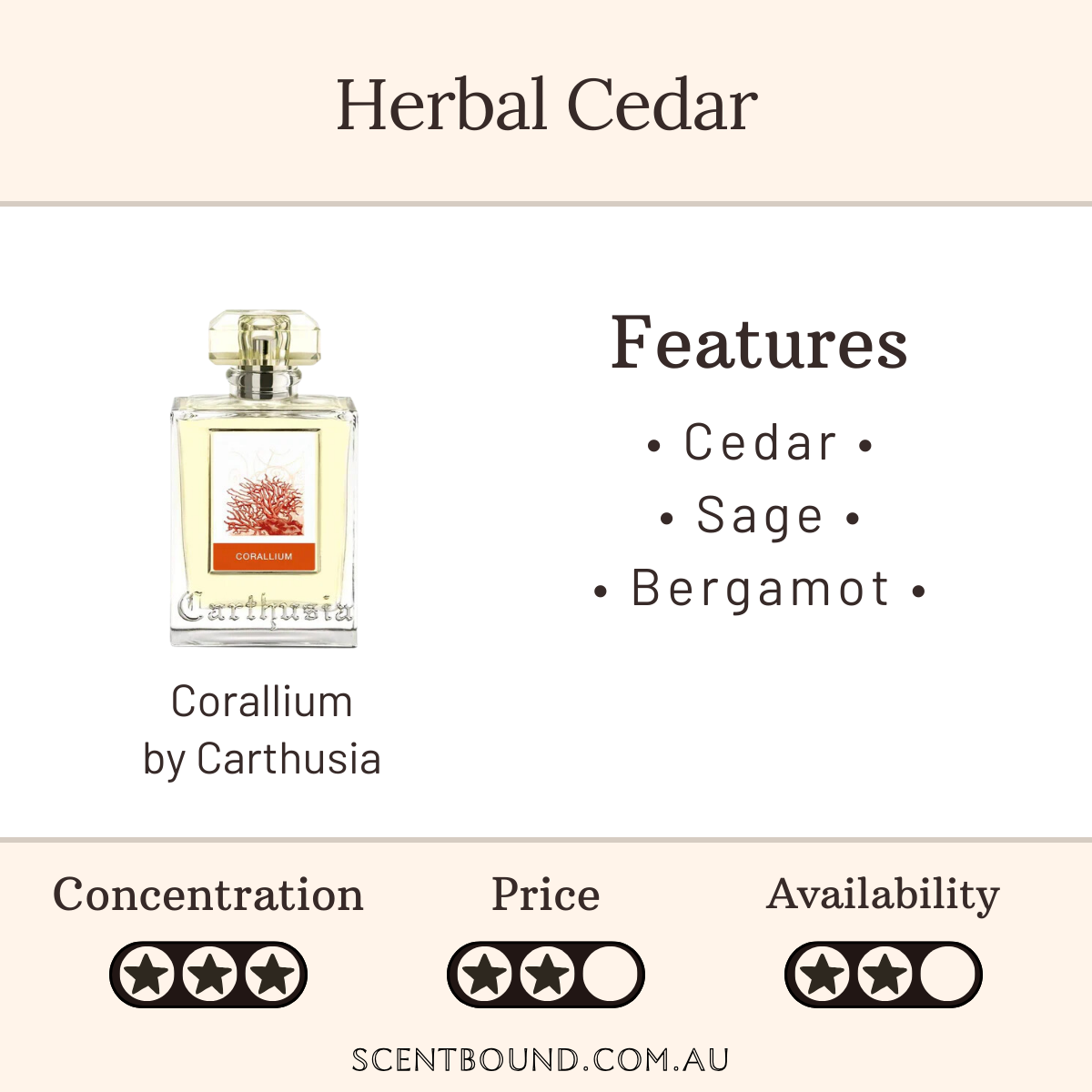 You can probably smell: Cedar, bergamot and herbs like bay leaf and sage.