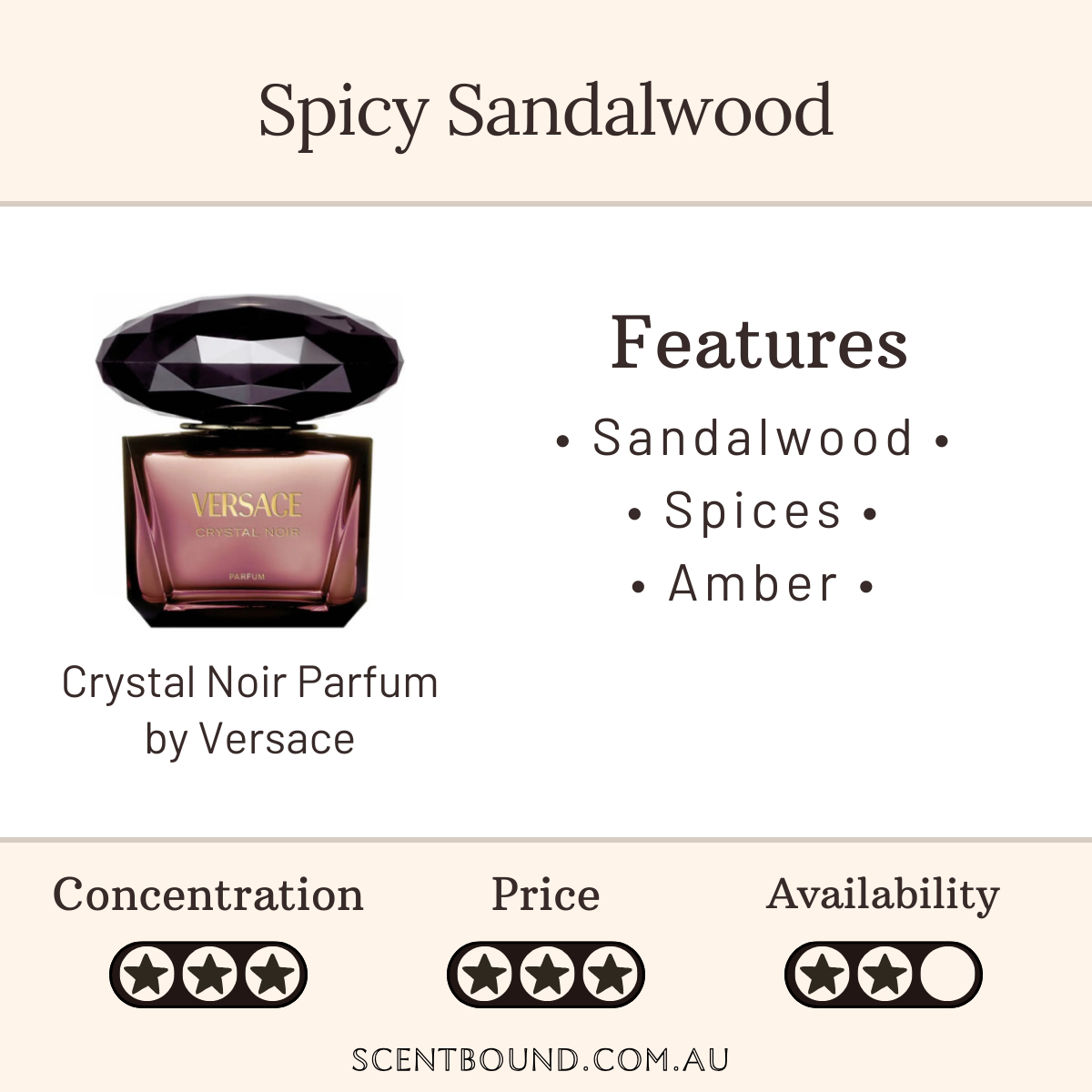 Crystal Noir Parfum is a luxurious and sophisticated fragrance by Versace. It blends the mysterious essence of black with the opulent nature of gold. The scent opens with bright citrus and bold spices, reminiscent of Middle Eastern sunsets and exotic markets. Its heart features lush floral notes and comforting sweetness, while the base provides depth with a woody oriental symphony. This fragrance embodies the sophistication, opulence, and rich cultural history of the Middle East, transporting the wearer to a world of luxury and enchantment.