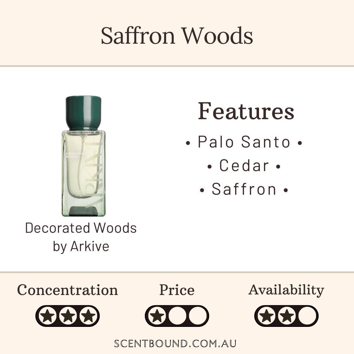 You can probably smell: Palo Santo, Sandalwood and Cedar, and Saffron.