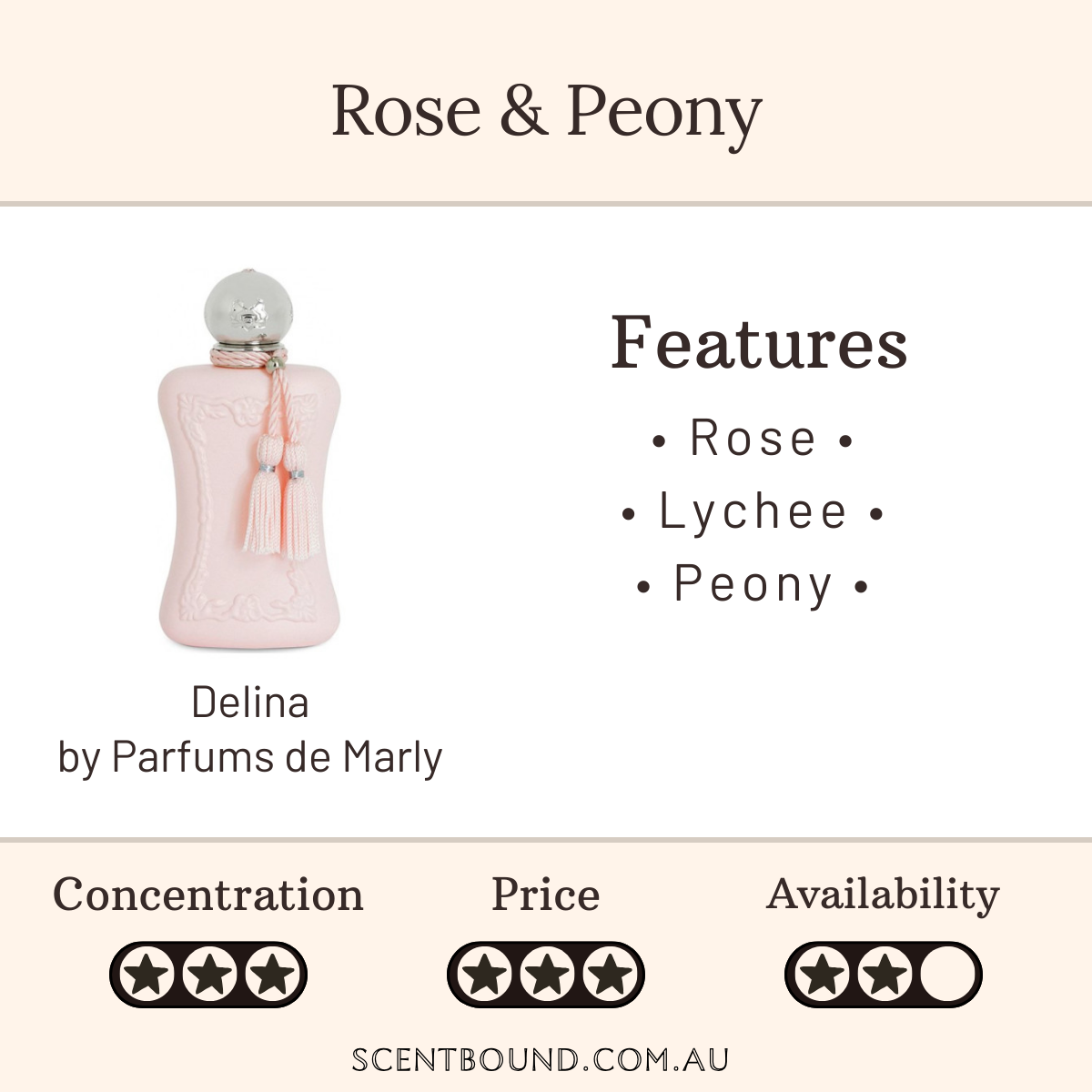 You can probably smell: Mostly rose, with peony, lychee and rhubarb, and musk.