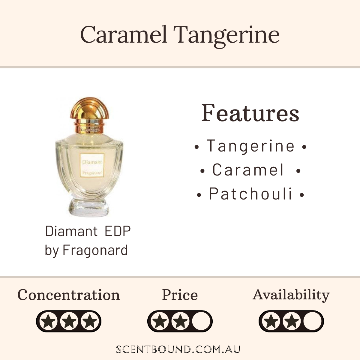 You can probably smell: Caramel, tangerine and some patchouli in the base.