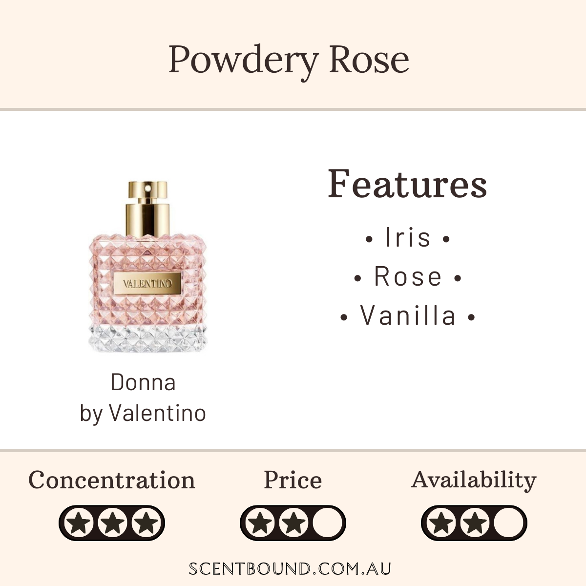 Description: Donna is a timeless fragrance capturing the spirit of the dolce vita. A classic floriental with a contrast of noble ingredients. Notes of iris and patchouli leave a long-lasting trail of elegant sensuality juxtaposed with the luminous femininity of rose absolute and peach.