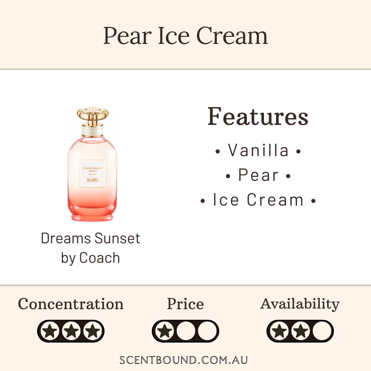 You can probably smell: Pear, ice cream, vanilla, tonka bean.