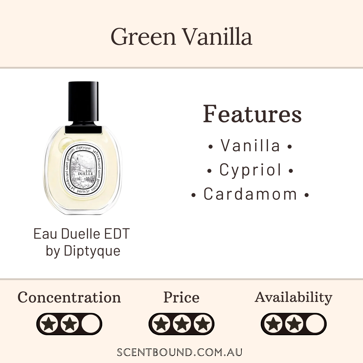Description: An eau de toilette that travels through time and across frontiers. In Eau Duelle, Bourbon vanilla from Madagascar brings out fresh fragrances. Sweet and sugary, joined here by addictive calamus and smoky accents of cypriol, cultivating a duality.