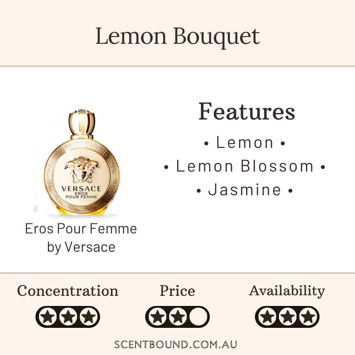 You can probably smell: Lemon, lemon blossom and jasmine, with some pomegranate.
