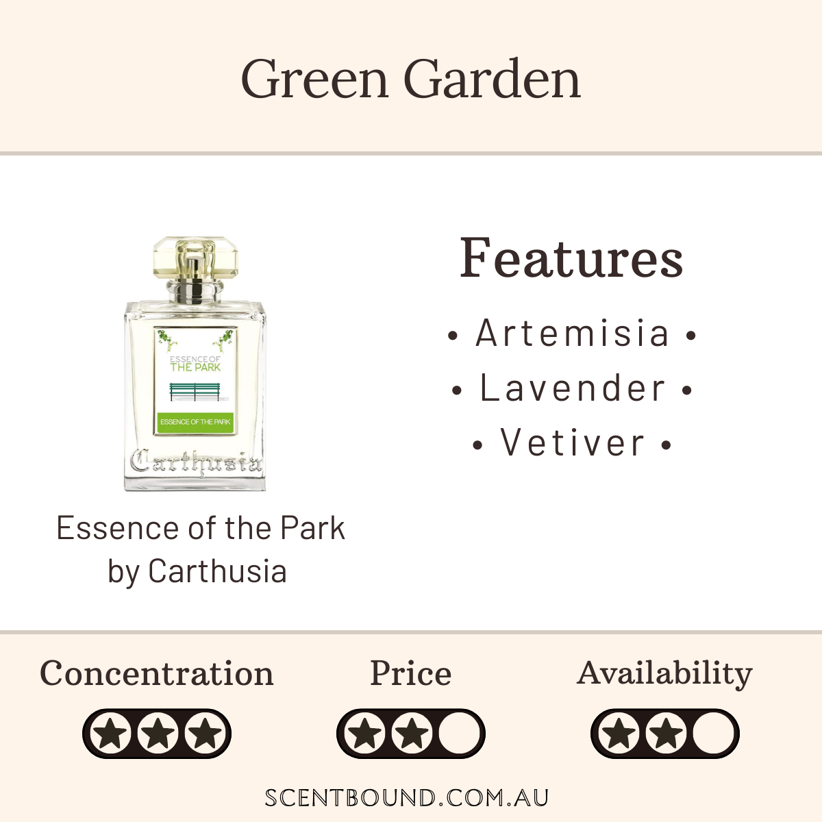 Description: Balmy, refreshing Mediterranean head notes open the radiant green accord of Carthusia's Essence of the Park Eau de Parfum. As the bouquet of Magnolia unfolds at its heart, the vibrant, sparkling aromas of citrus fruits and lush Artemisia are anchored by a deep soothing resinous base of light woods and amber.