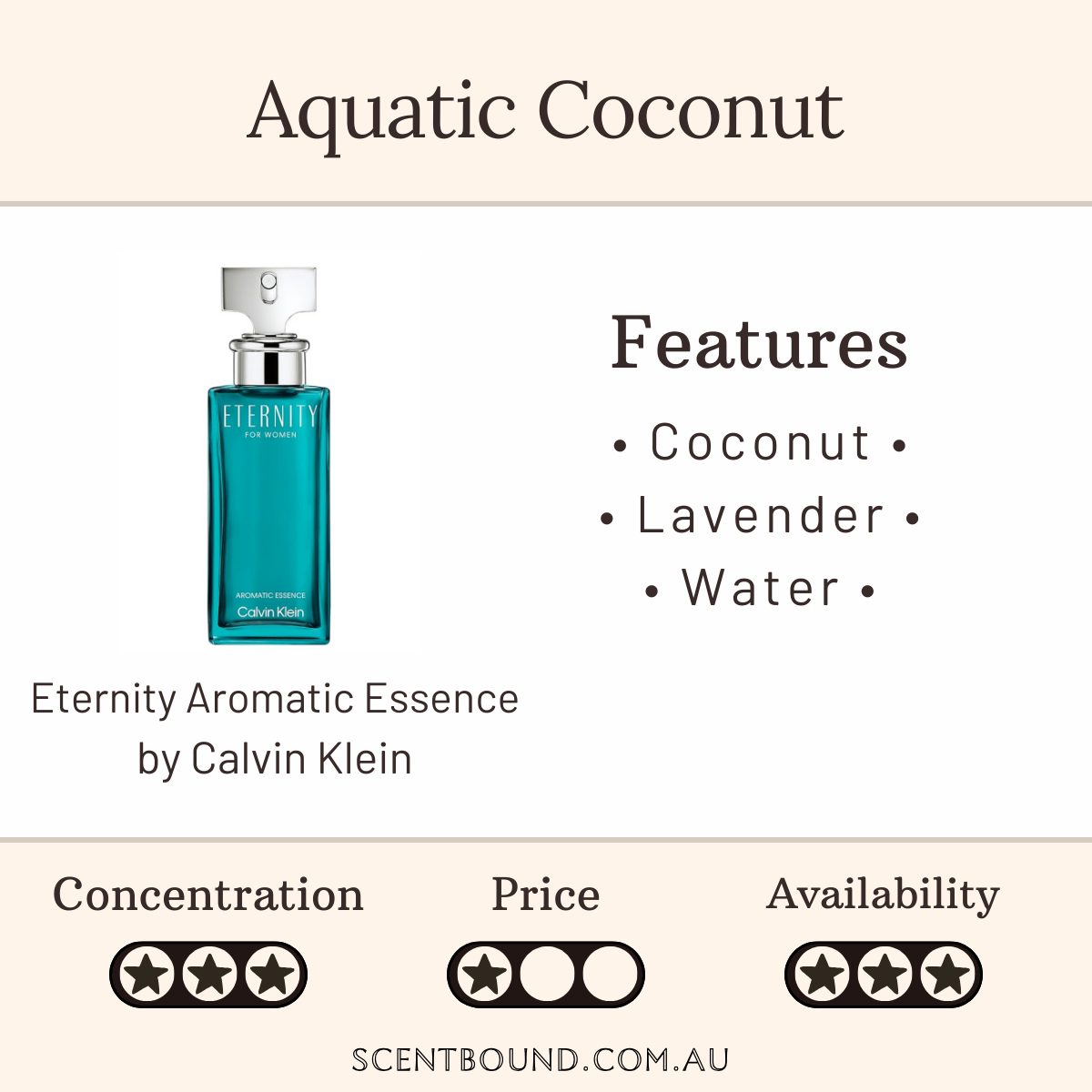 Description: A sensual contrast of fresh aromatic florals and a gourmand base. Centered around a silky coconut water accord at the heart, aquatic top notes lend the Calvin Klein Eternity for women additional vibrance.