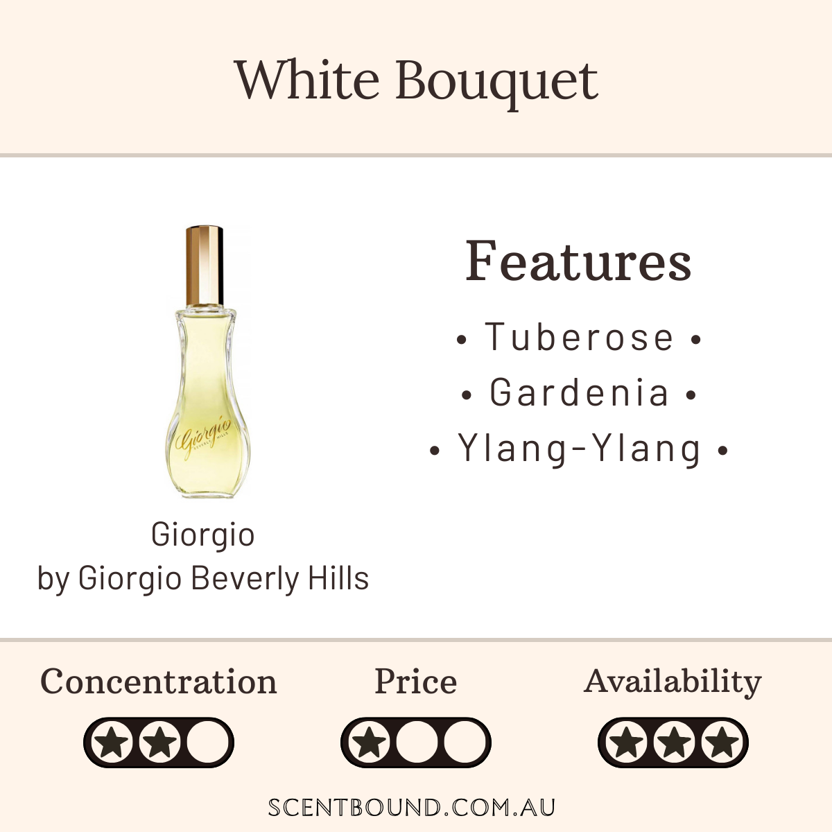 You can probably smell: White florals; tuberose, gardenia, chamomile, some ylang-ylang and oakmoss.