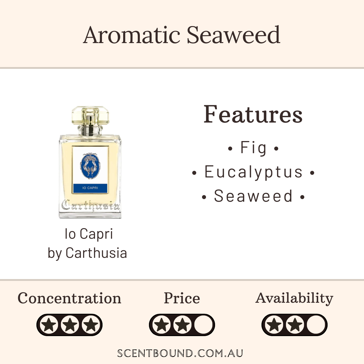 You can probably smell: Lemon, fig, eucalyptus and seaweed.