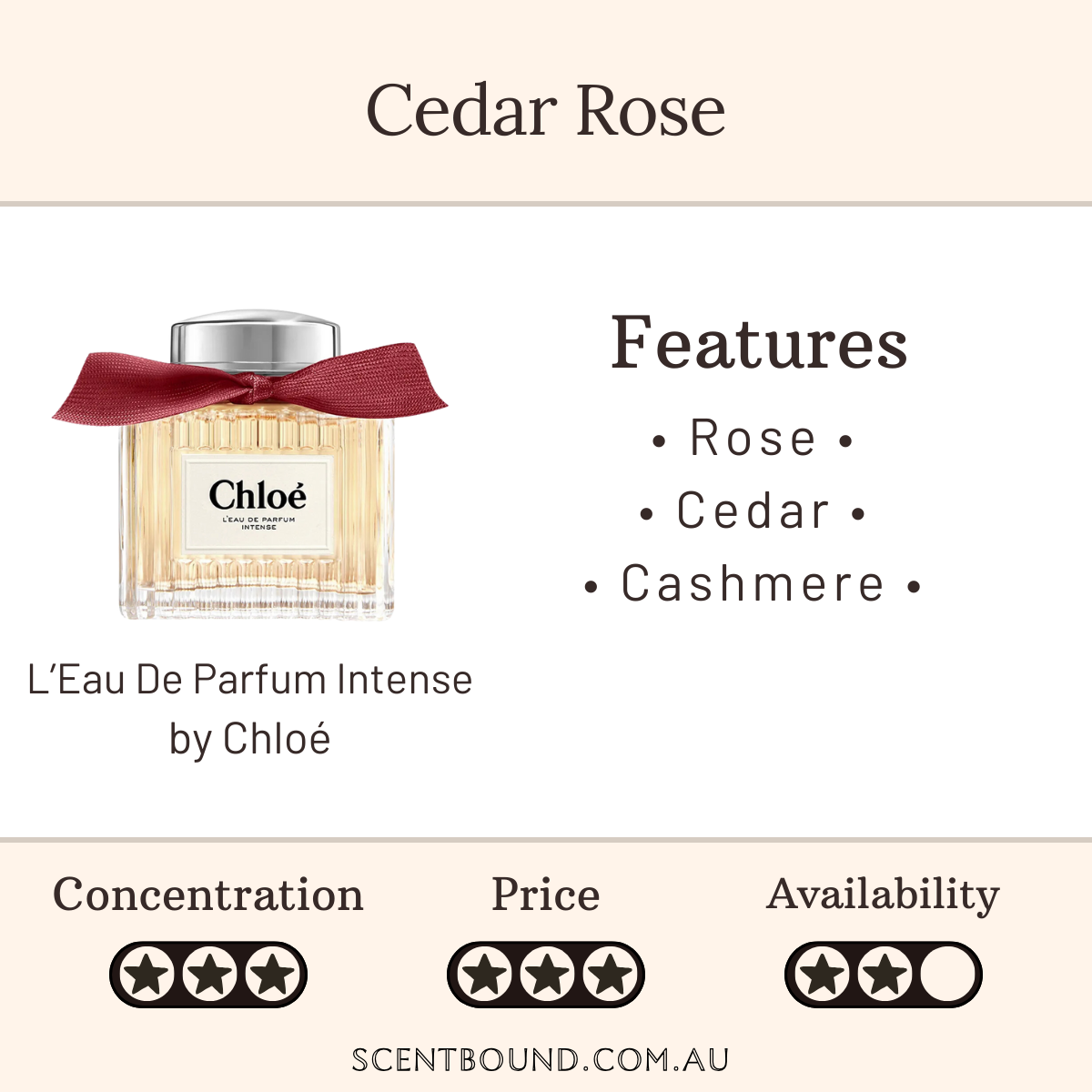 Chloé L’Eau de Parfum Intense is an addictive floral fragrance for women that opens with vibrant, juicy raspberry notes, underlining the sensuality of the rose that lies beneath. As alive as if captured at any moment of the day, its strong fragrance evokes at once the fresh morning rose, green and slightly crisp, the open midday rose, rich and deep, and the honeyed evening rose, with its sensual, addictive accents. Then, a bouquet of warm and ambery woods unfolds, each more concentrated than the last. Ambrox brings its musky, woody notes, Cashmeran offers its voluptuous sensuality, and cedar reinforces the fragrance’s unique character.