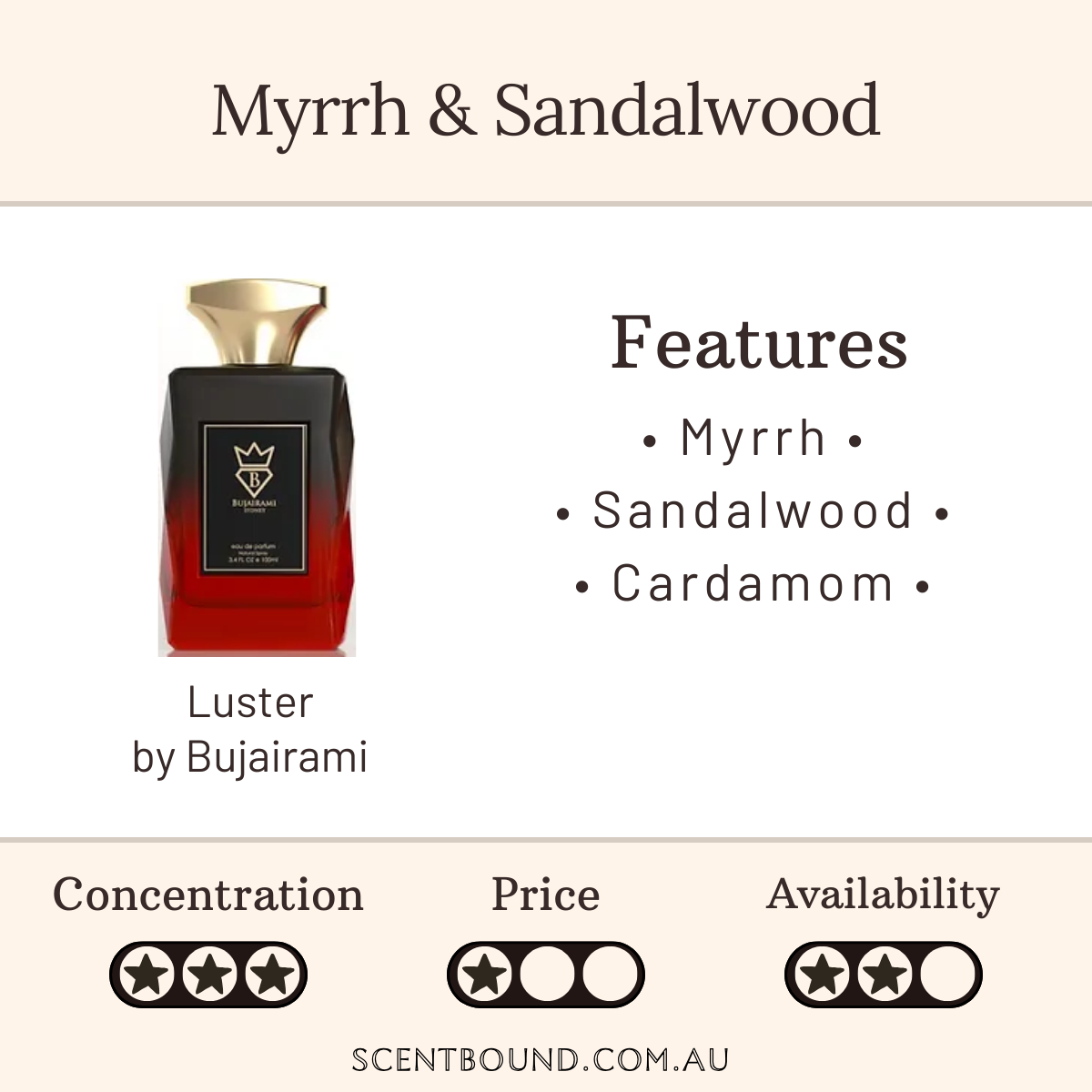 You can probably smell: Myrrh, Cardamom, Sandalwood and Orris.