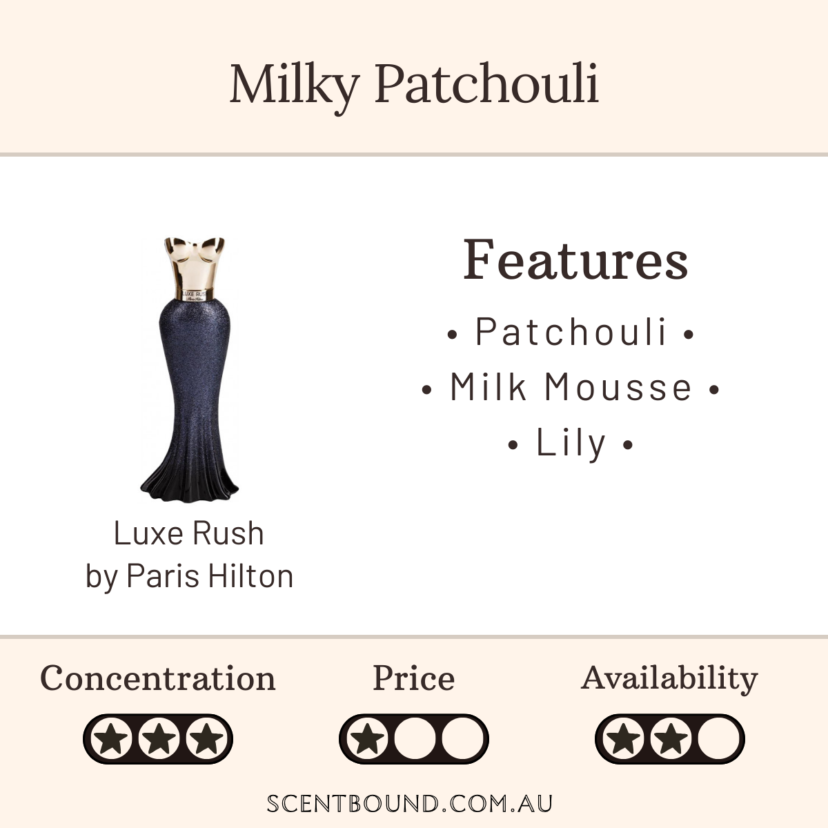 Notes: Top notes are Sicilian Bergamot and Pink Peony; middle notes are Tyger Lily, Tuberose and Frangipani; base notes are Patchouli, Milk Mousse and Sandalwood.