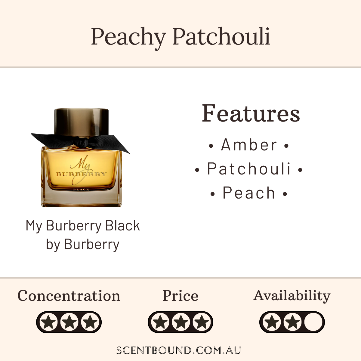 You can probably smellĀ the amber, peach and patchouli.
