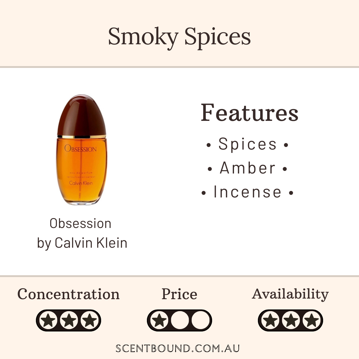 You can probably smell: Spices, amber, incense, vanilla and sandalwood in the base.