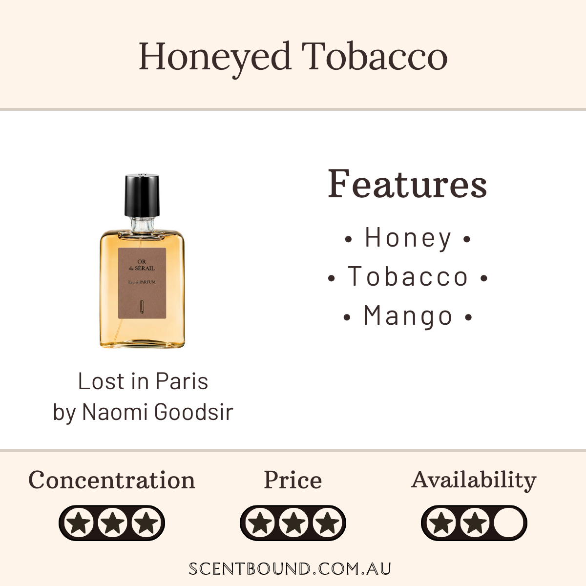 Heart notes: beeswax coco, geranium, ylang-ylang, Turkish tobacco, amber
