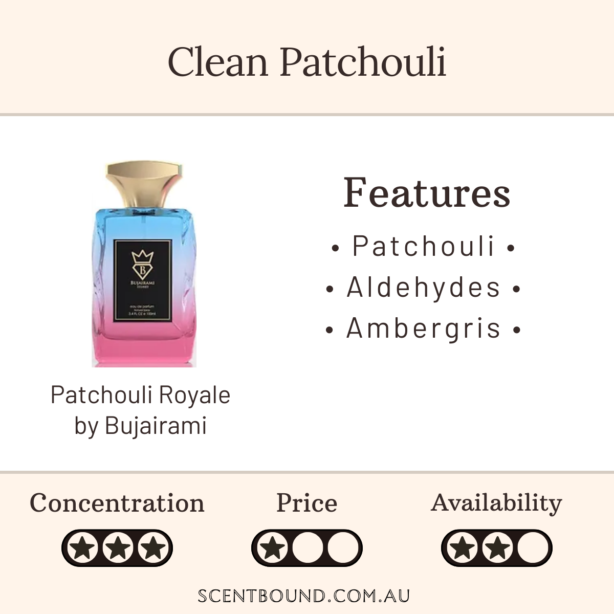 You can probably smell: Mostly patchouli, with ambergris and aldehydes.