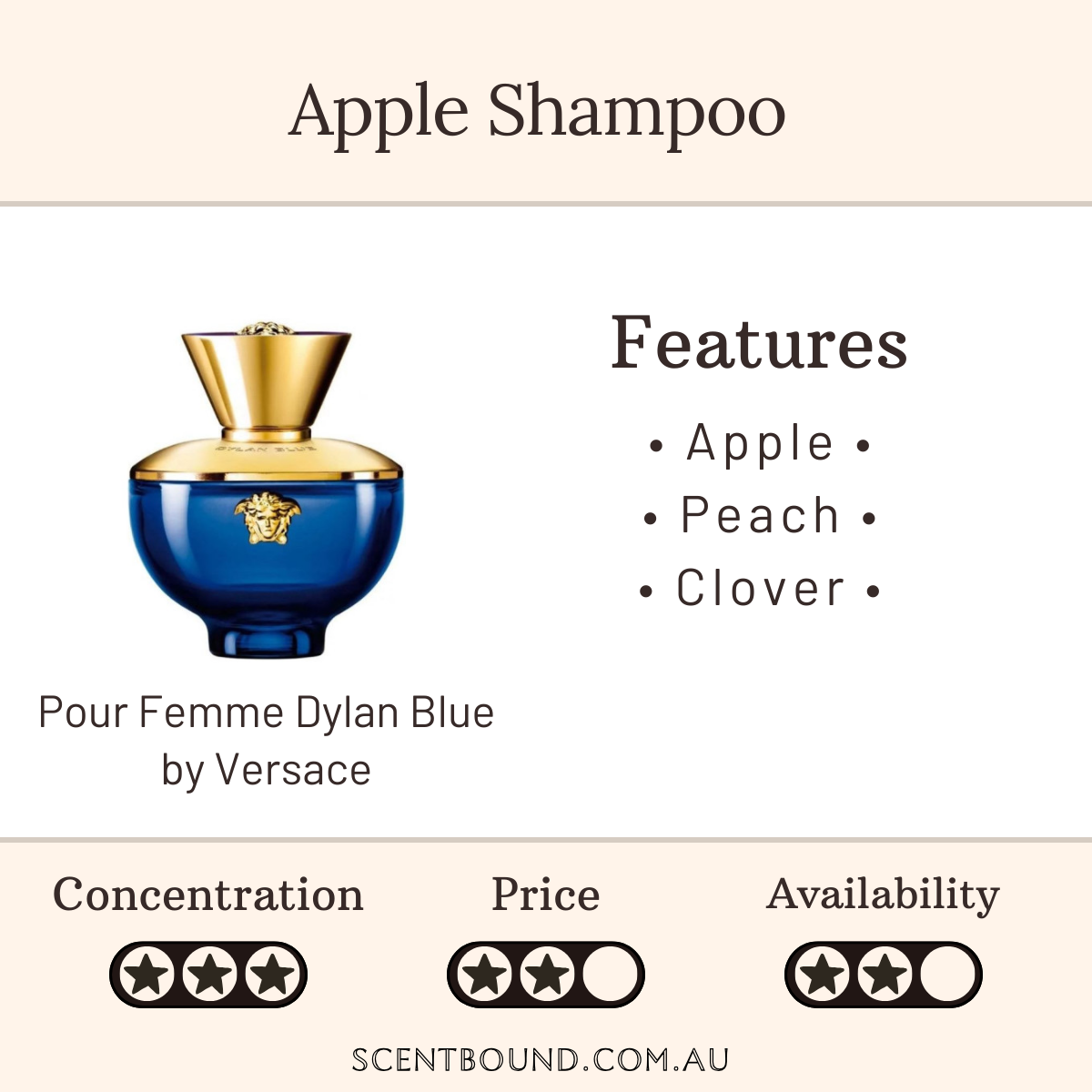 You can probably smell: Apple, peach, blackcurrant, clover and musk.