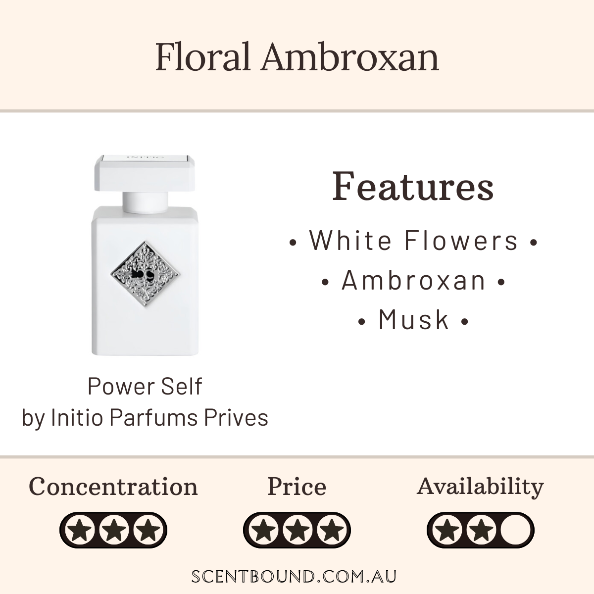 Notes: White flowers, Osmanthus, Rose (white), Magnolia, Pepper (pink/rose), Ambrox, Musk, Cedarwood.