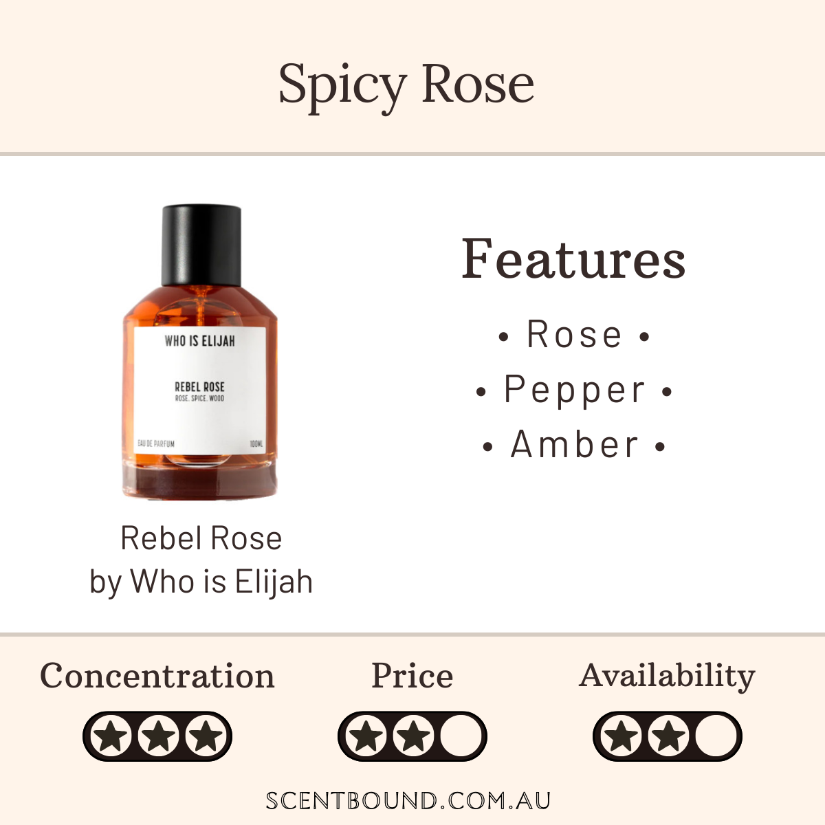 Description: Rebel Rose exudes an audacious, magnetic energy. It opens with a daring burst of saffron, labdanum, cumin, and pepper, setting the stage for a captivating evolution.