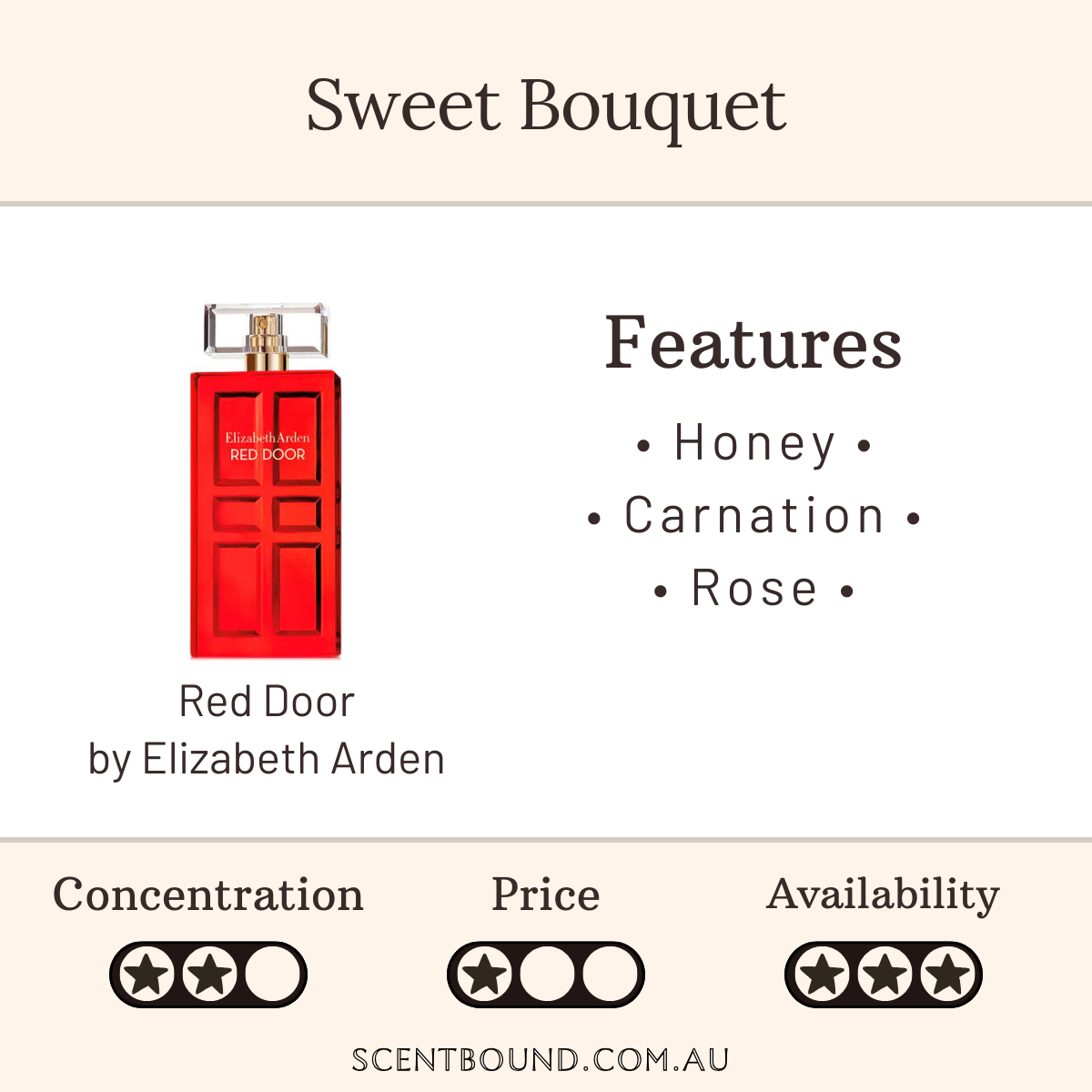 Description: Warm and inviting, Red Door is a timeless bouquet of rich, rare florals, including freesia, red roses and orchids. Honey and sandalwood set a sensual mood for an alluring finish. A classic fragrance with an elegant design and red gloss finish.