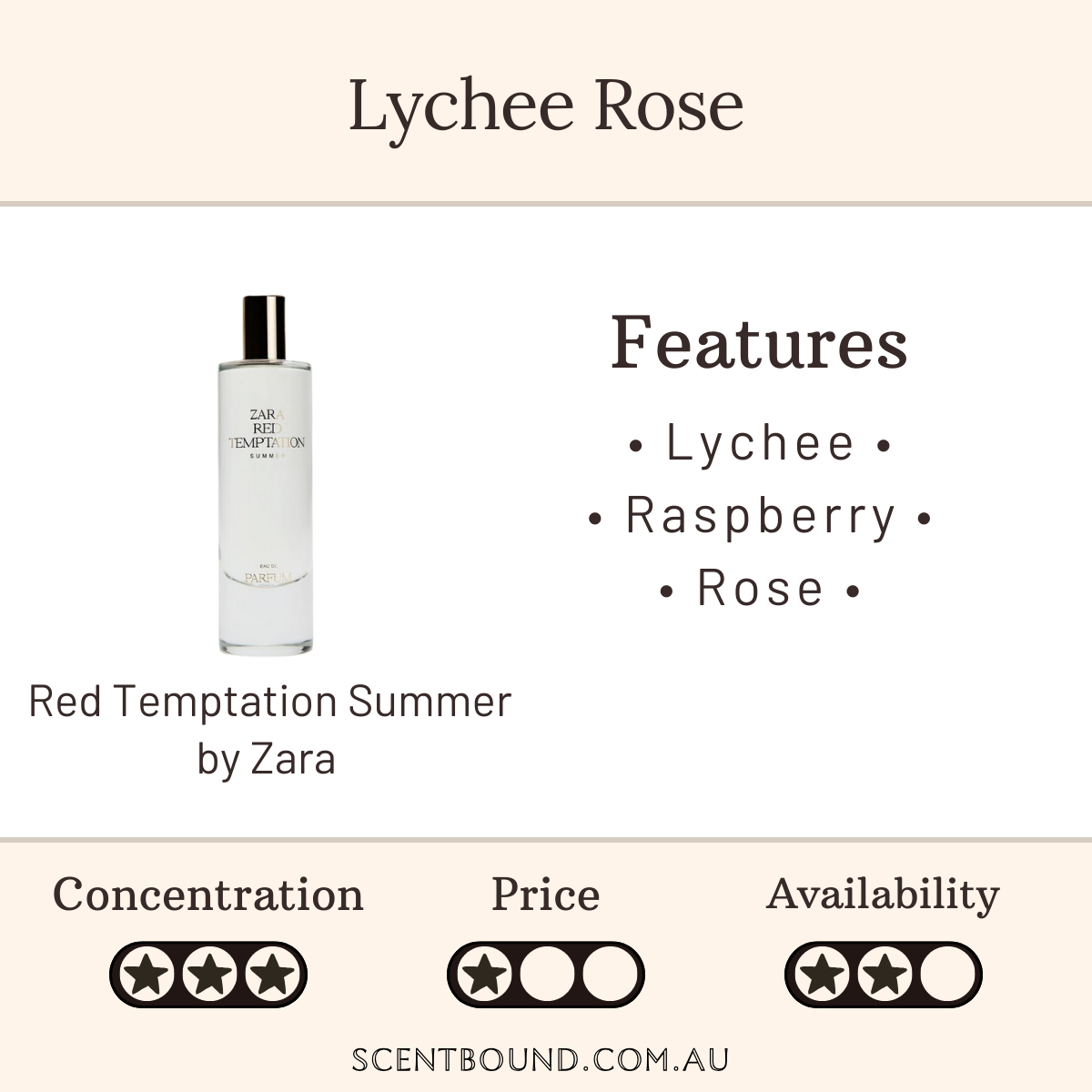 Looking for something similar? Affordable alternatives include Breezy Rose by Zara (a muskier version), Club de Nuit White Imperiale by Armaf is a lychee-rose fragrance with vanilla in the base, and Embrace by Guy Sebastian is another similar fragrance.