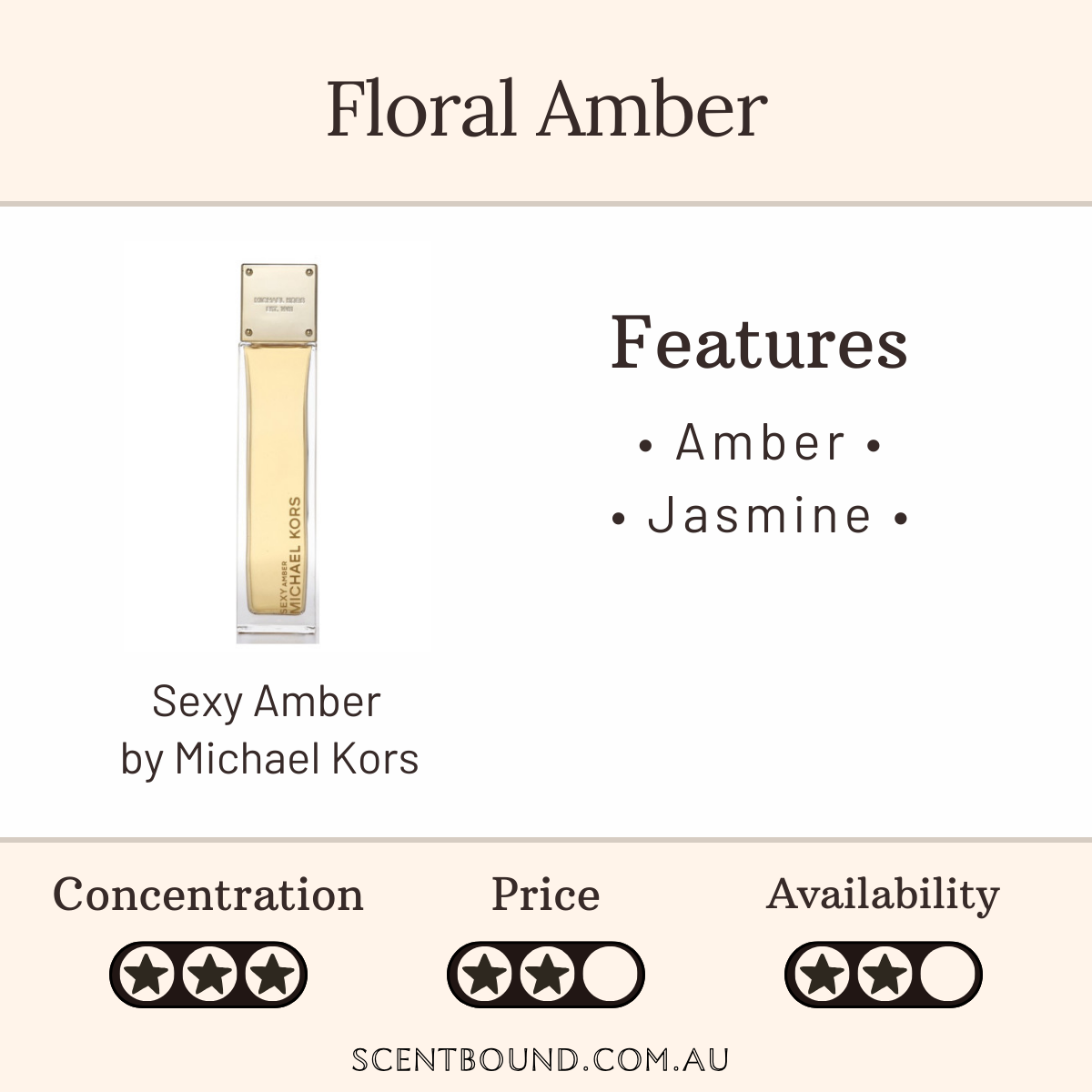 Description: SEXY AMBER is a sumptuous, nuanced amber fragrance that exudes allure with your every turn. The inspiration was pulled from the bold colours that often highlight a Michael Kors fashion collection.
