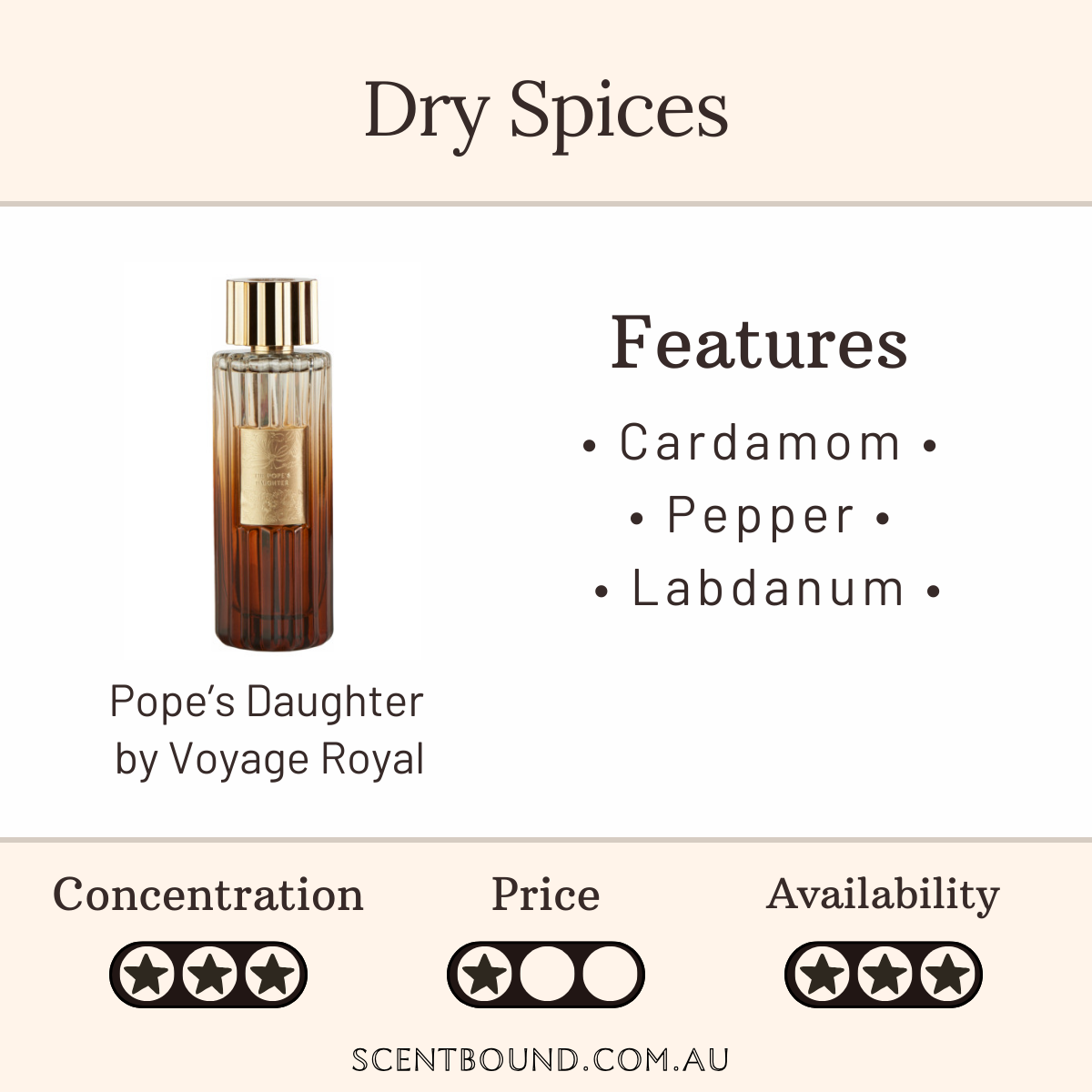 Description: The Pope’s Daughter opens up with an interweaving of cardamom and black pepper, which confer brightness and mystery to the creation, introducing the characteristic and warm accord of the heart, where amber, labdanum and an intriguing geranium stand out. On the bottom, an extra creamy sandalwood accord hugs the mèlange, mixing up with the majesty of cedar wood and the typical elegance of musk.