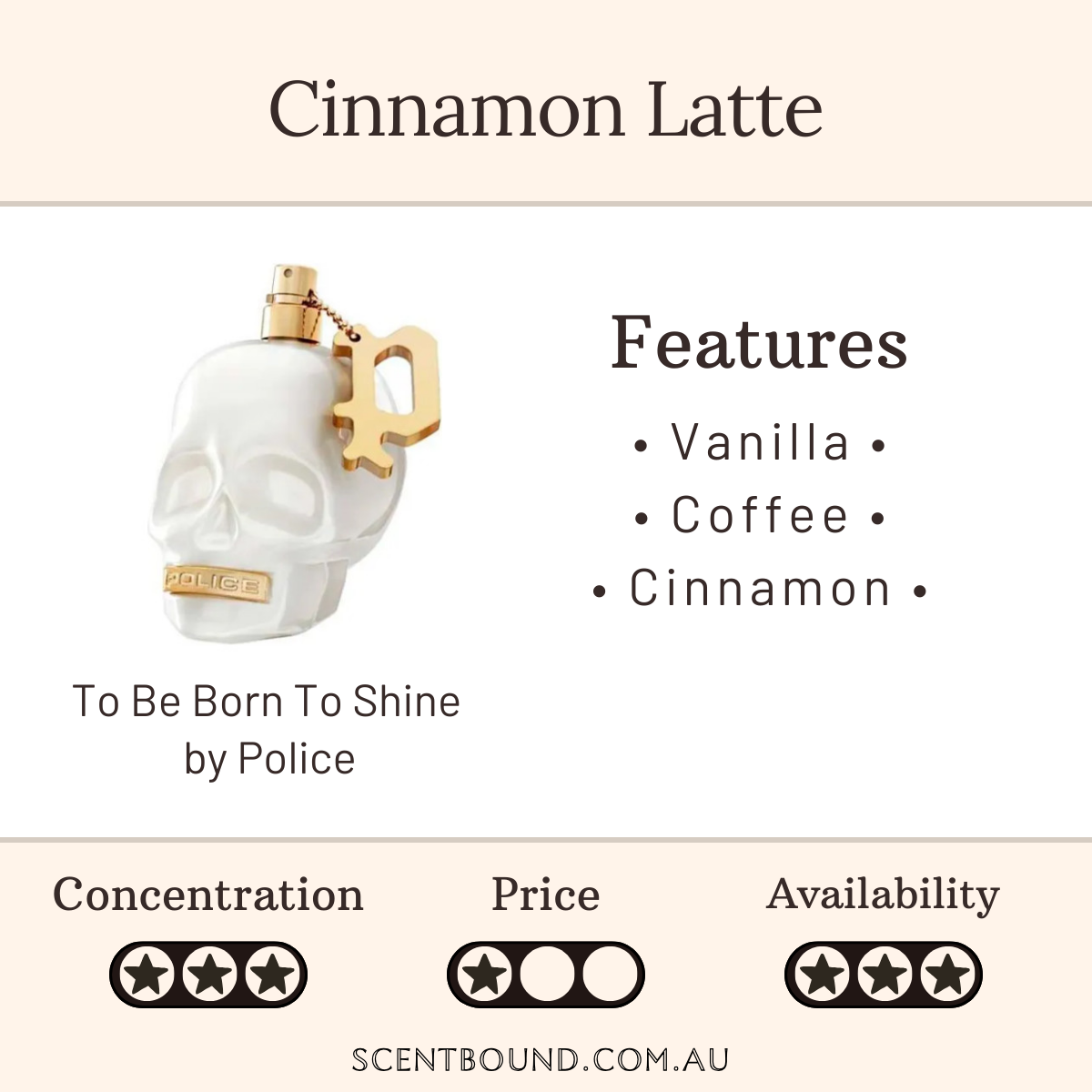 Notes: Top notes are Cinnamon, Apple Blossom, Bergamot and Italian Mandarin; middle notes are Coffee, Jasmine, Plum and Damask Rose; base notes are Vanilla, Patchouli, Sandalwood and Cashmere Wood.