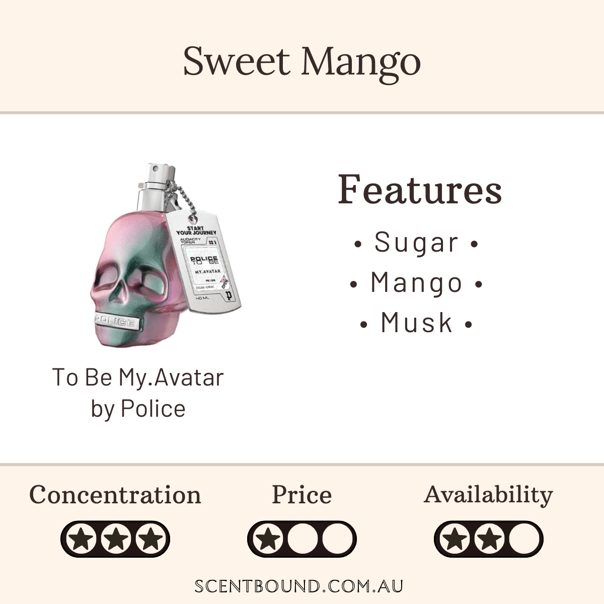 You can probably smell: Sugar, musk, mango, lotus flower and some woods.