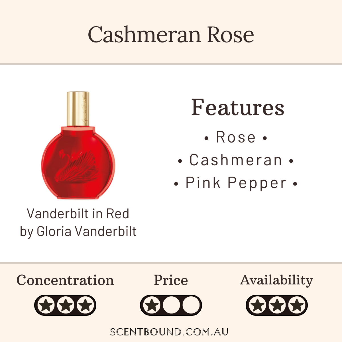 You can probably smell: Rose, pink pepper, cashmeran and vanilla.