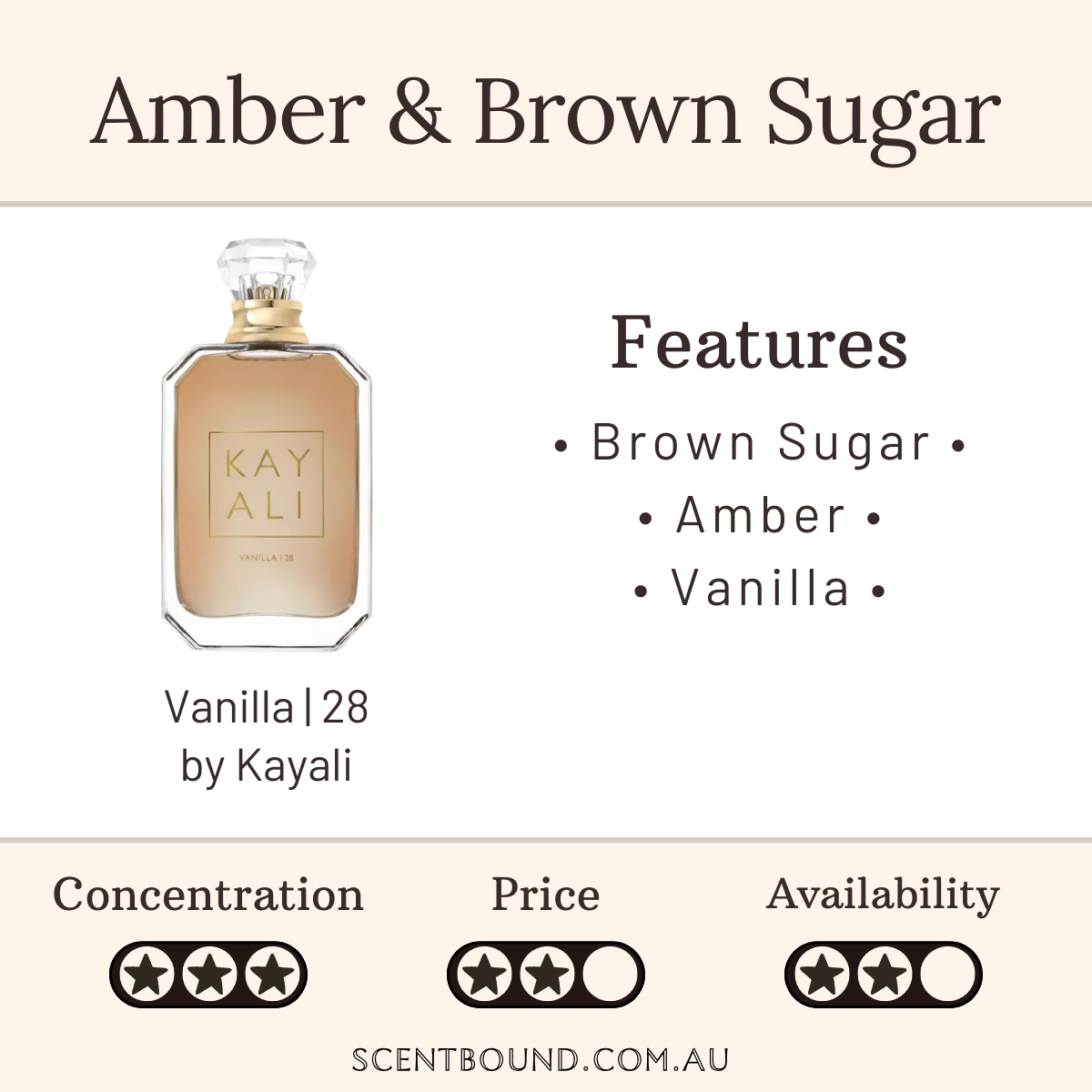 Notes: Top notes are Vanilla Orchid and Jasmine; middle notes are Brown sugar and Tonka Bean; base notes are Amber, Amberwood, Musk and Patchouli.
