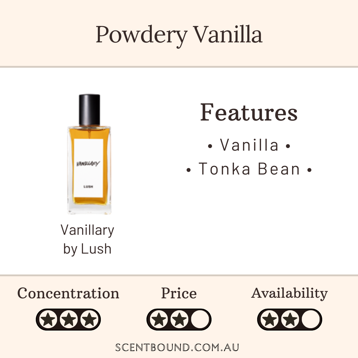 Notes: Vanilla, tonka bean, jasmine.