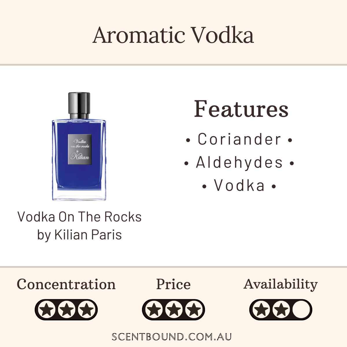 Description: The perfume Vodka on the Rocks is part of the KILIAN Fresh Citrus family. Fresh aromas reminiscent of a sip of sparkling citrus fruits, aquatic notes or refreshing aldehydes, they bring freshness, lightness, and a serene feeling to Kilian compositions.
