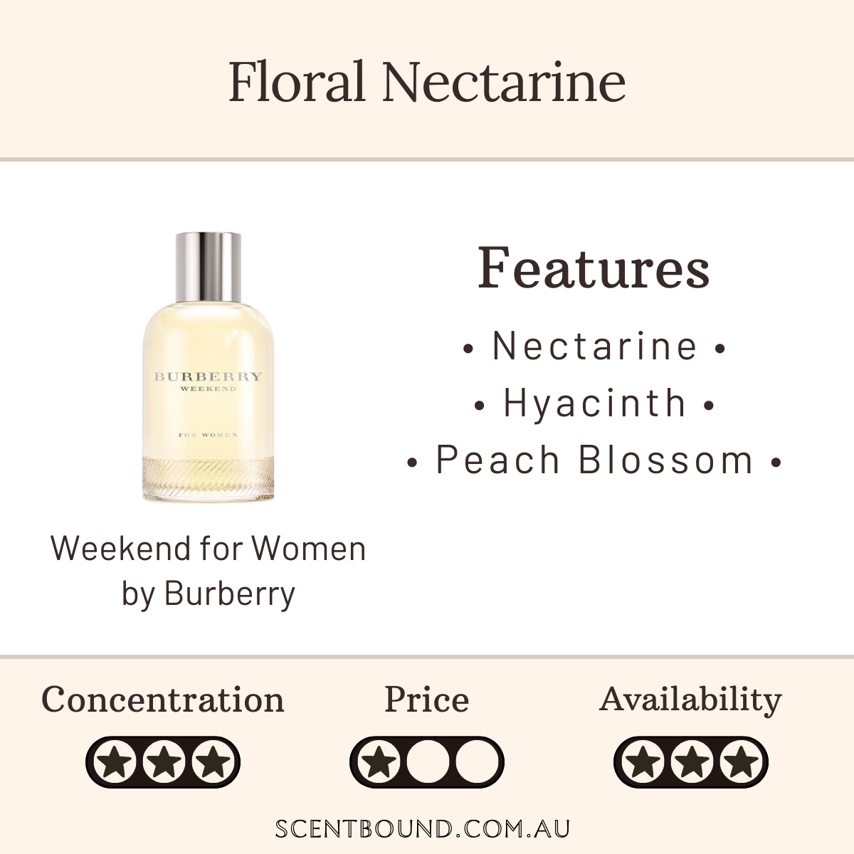 You can probably smell: Nectarine and mixed flowers like hyacinth, peach blossom and migonette.