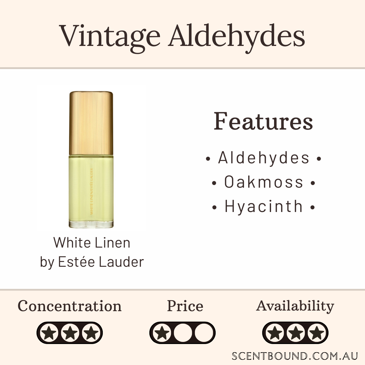 You can probably smell: Aldehydes, some oakmoss, clean hyacinth and some aromatic notes like geranium and vetiver.