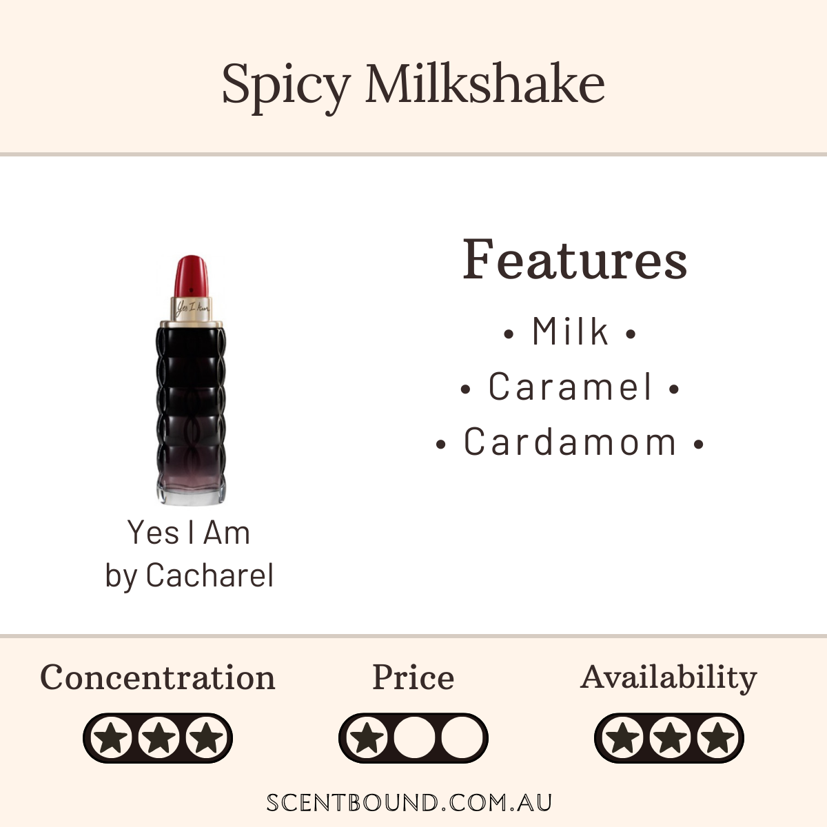 Base notes are Milk, Caramel, Vanilla, Cardamom, Licorice, Coumarin, Benzoin, Sandalwood and Amberwood.